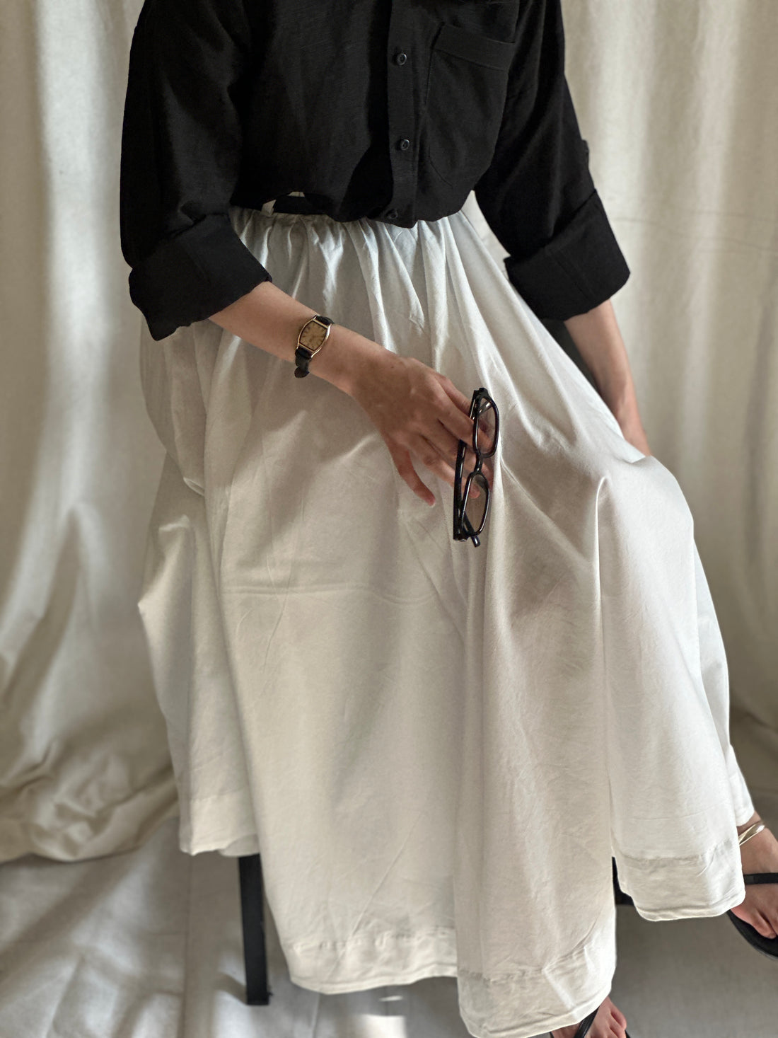 Crisp, clean, and endlessly versatile — the White Fall Skirt is crafted from breathable cotton...